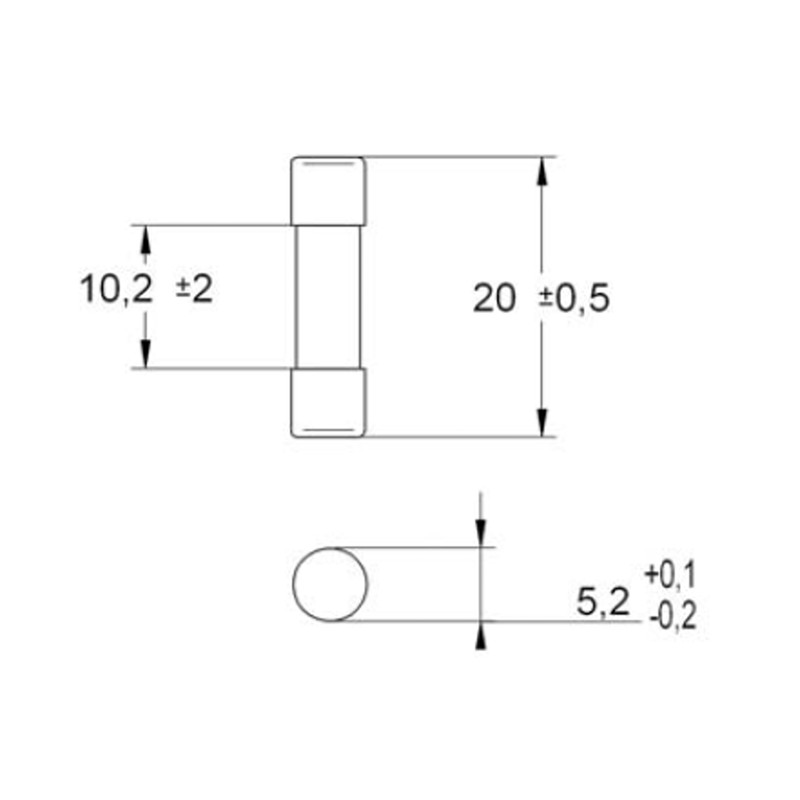 - Dimensiones del calibre del fusible 5 x 20 mm