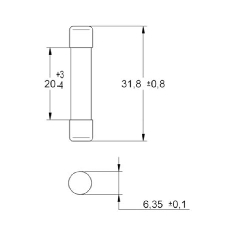 - Dimensiones del calibre del fusible 6,3 x 32 mm