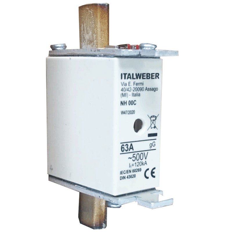 Fusible de cuchilla Italweber NH 00C curva estándar gG 63A 500V 1500663