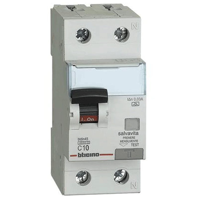 Interruptor automático diferencial Bticino 1P + N 10A 30mA tipo A 4,5kA 2 módulos GA8813A10