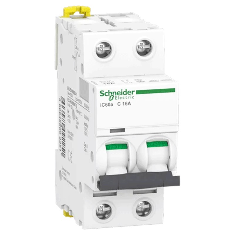 Interruptor de circuito-Schneider 2P 16A 4,5 KAC 2 módulos A9F64216