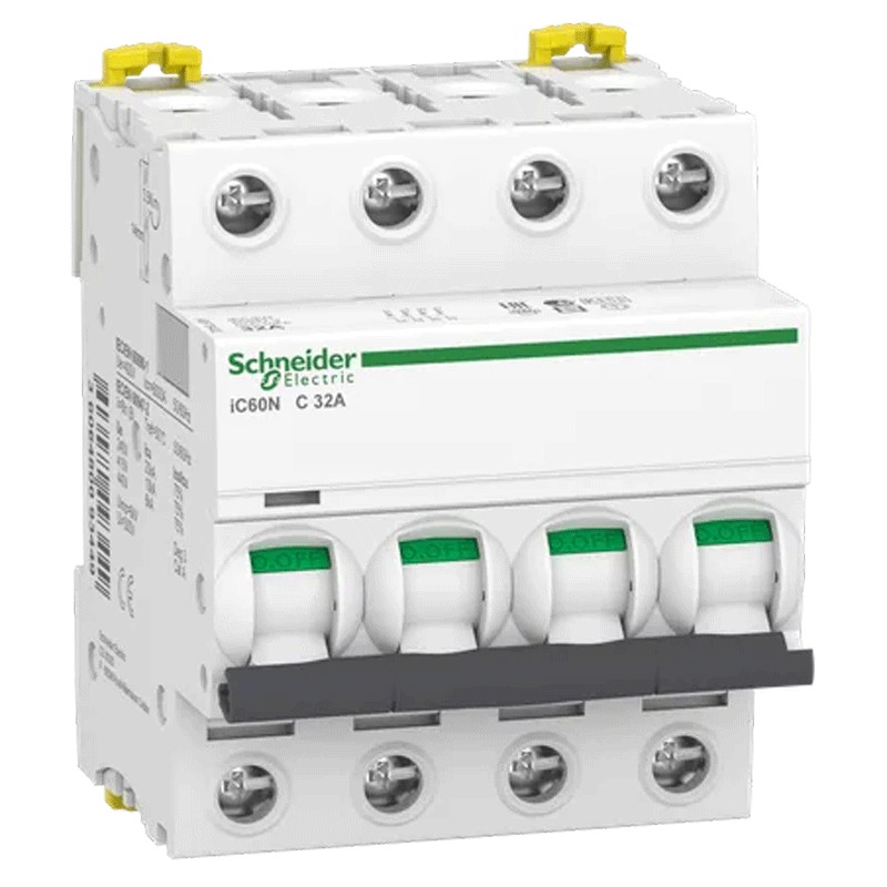 Interruptor de circuito-Schneider 4P 32A 6 KA C 4 módulos A9F79432