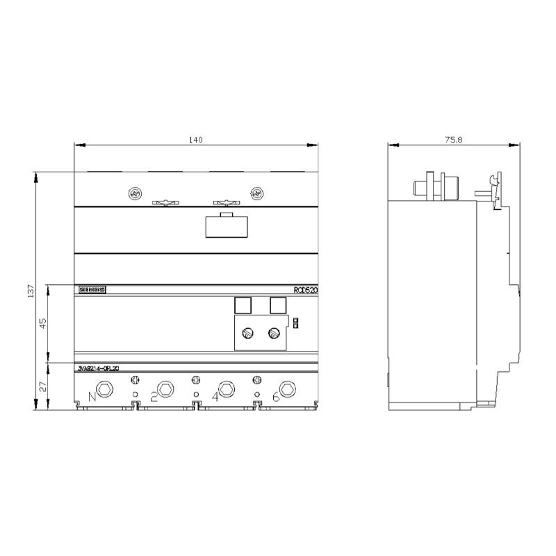 Módulo diferenciado Siemens RCD520 para la serie 3VA12 de 4 polos 3VA92140RL20