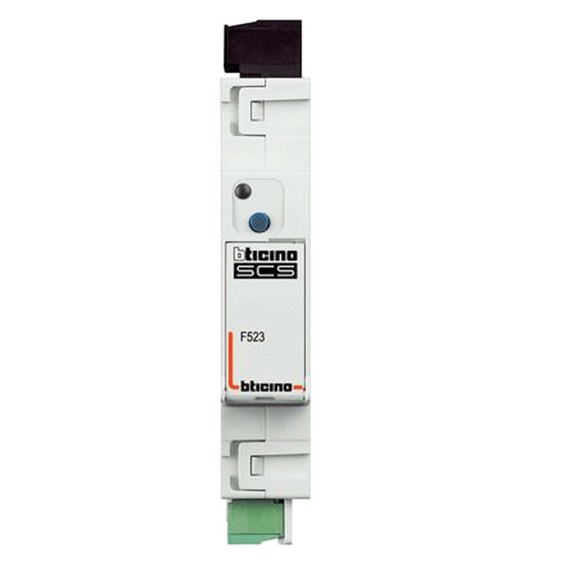 El relé biestable permite mantener el estado de la carga incluso en caso de fallo de alimentación en el bus SCS (y posterior reinicio del dispositivo). El dispositivo ocupa un módulo DIN y tiene una ranura para 6 configuradores: A, PL, G, M, P1, P2