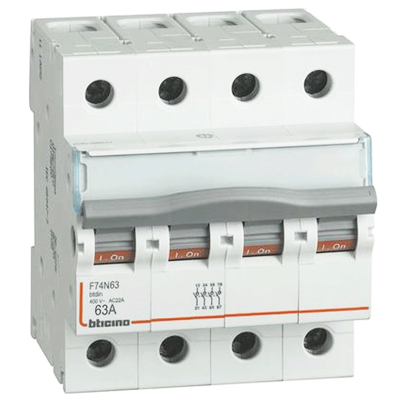 Seccionador Bticino 4P 63A 4 módulos F74N63