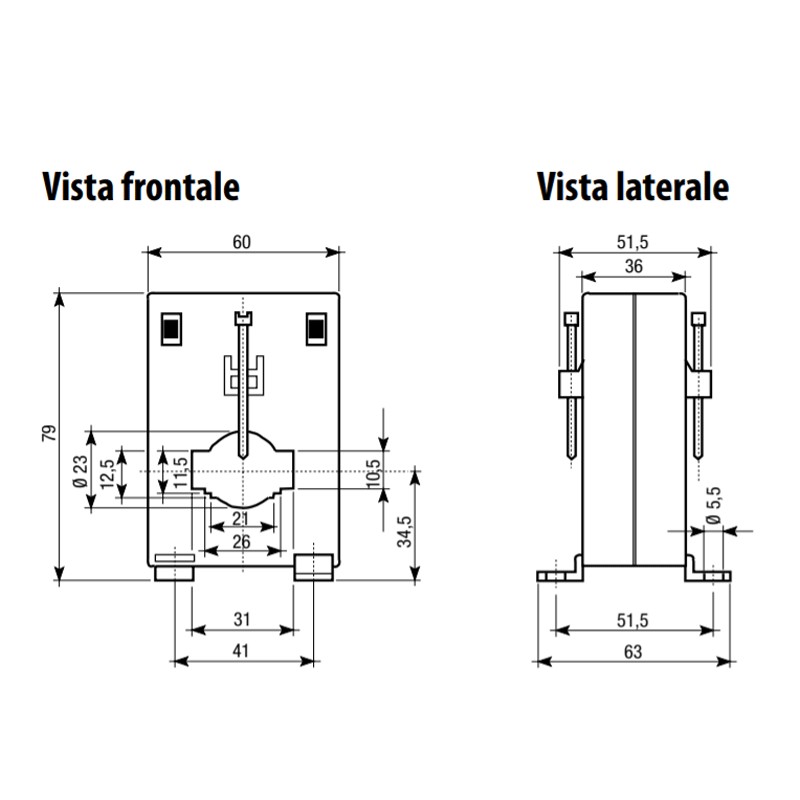 - Abertura (orificio) para el paso de cables o barras colectoras (primario)