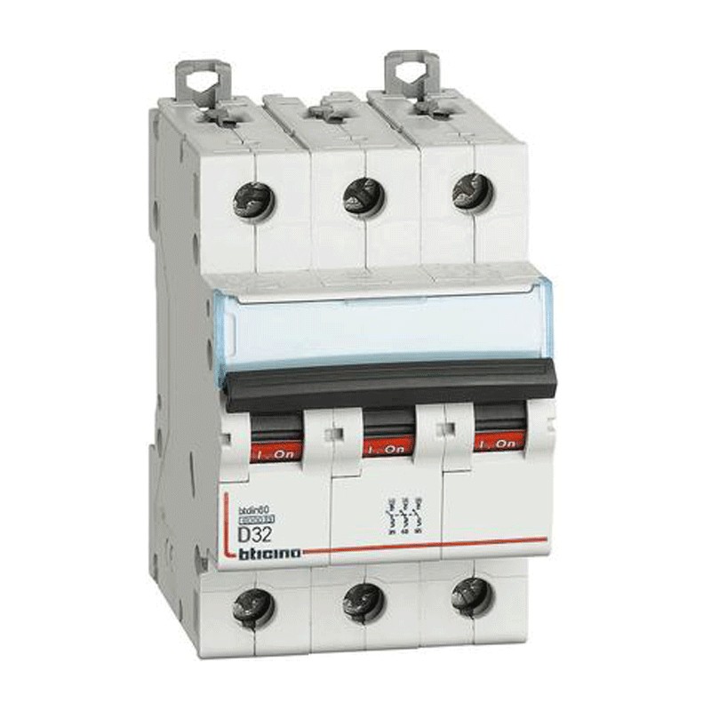 Disyuntor Termomagnético Bticino 32A 3 Polos 6KA Curva D 3 Módulos FN83D32