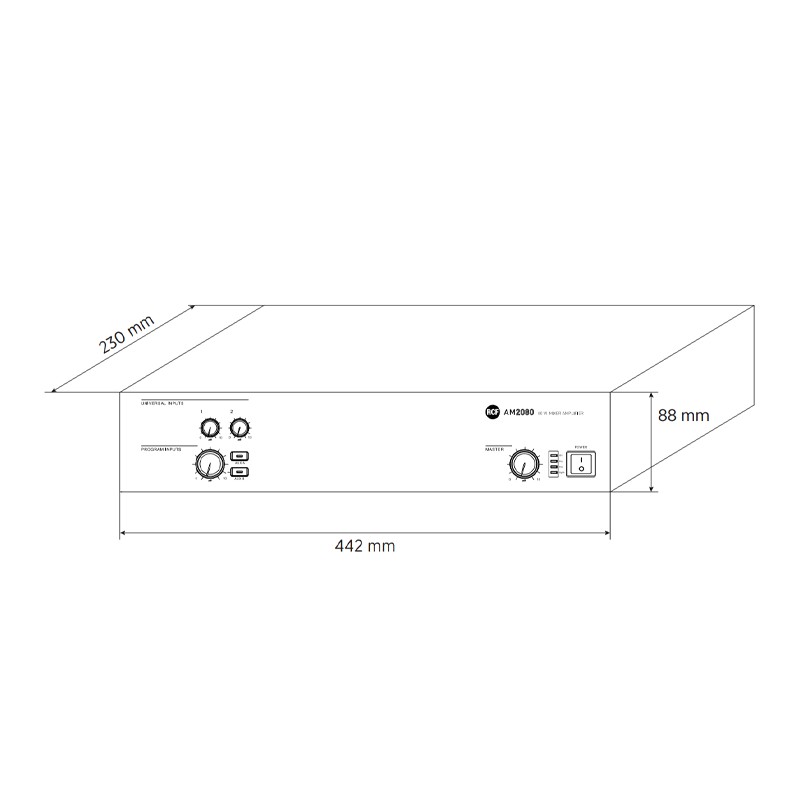 ElAM 2080 es un mezclador-amplificador con 2 entradas de audio de línea de micrófono en conectores extraíbles (la entrada 1 también tiene un conector XLR) y 2 entradas auxiliares para posibles fuentes de sonido externas (por ejemplo, reproductores de CD, sintonizadores de radio, etc.). Tiene una potencia nominal de 80W.