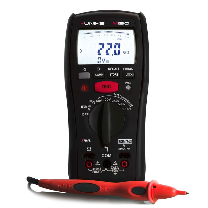 Uniks MISO combina en una sola solución un multímetro TRMS, un medidor de aislamiento y un medidor de continuidad de 200mA de muy alto rendimiento.