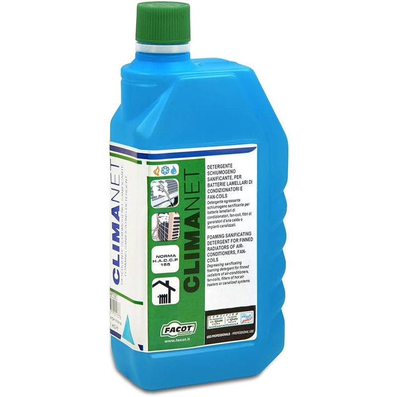 Limpiador desengrasante, espumante Facot Climanet e higienizante superior para serpentines laminares de acondicionadores de aire, fan coils, filtros de generadores de aire caliente o sistemas canalizados.