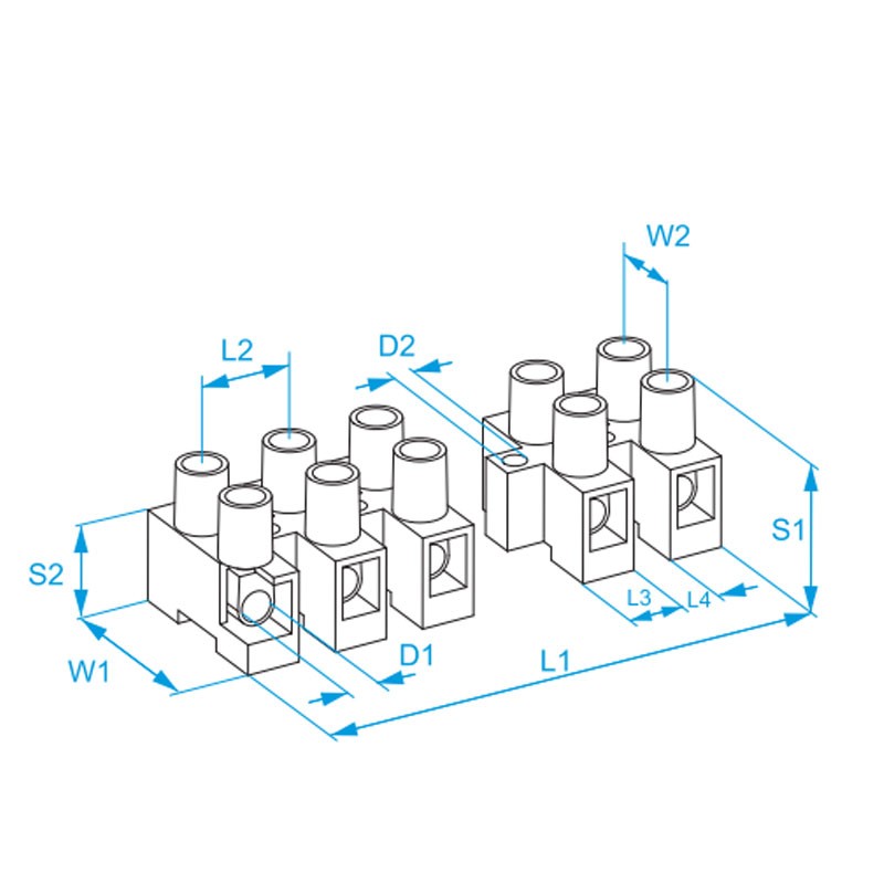 - Dimensiones: L1 (mm) L2 (mm) L3 (mm) L4 (mm) W1 (mm) W2 (mm) S1 (mm) S2 (mm) D1 (mm) D2 (mm): 116,5 10 6 4 20,5 10 17,2 9,5 3,1 3,1