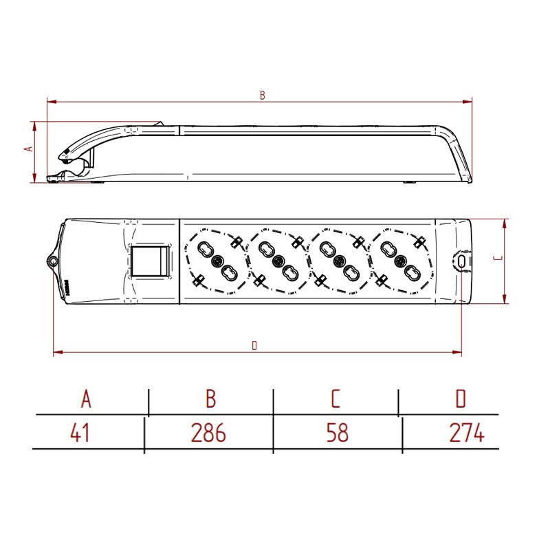 Toma de corriente multiple Fanton SERIE FIDO sin cable 4P40, con las siguientes características