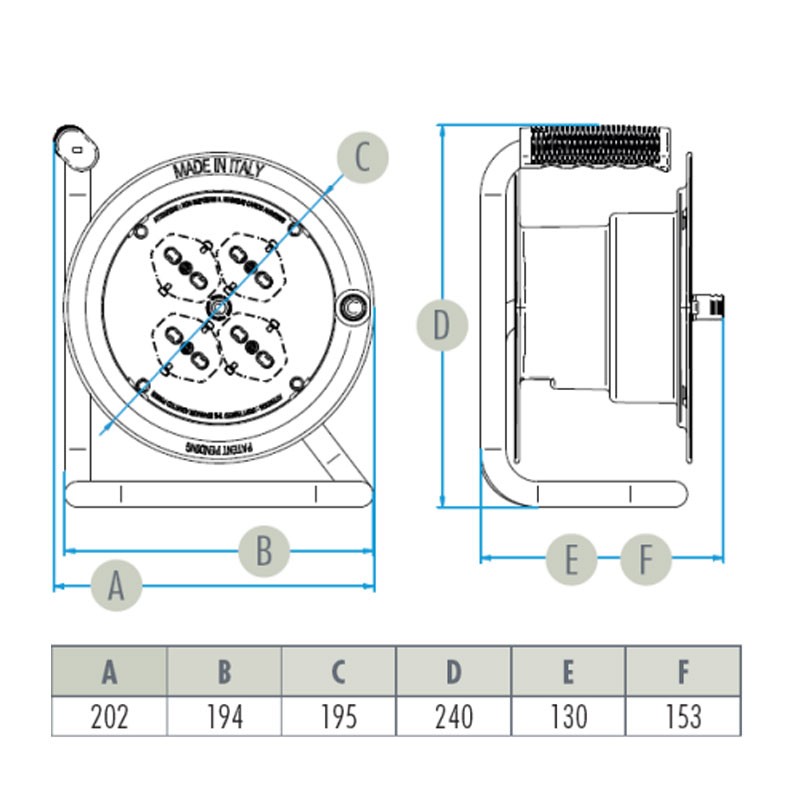 Cable de extensión de rollo Fanton ONDINO Ø 195 mm, con las siguientes características