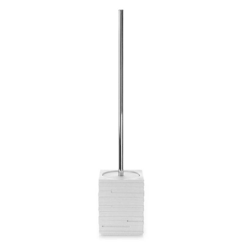 Portaescobilla Gedy Quadrotto blanco, fabricado en resina, con escobillero y cerdas, efecto estriado, dimensiones: 9,5x9,5x46cm.