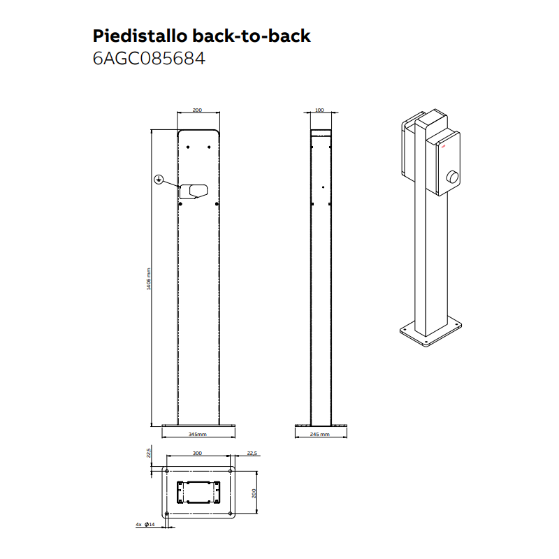 Soporte Abb para dos Terra AC Wallbox Chargers, para su instalación independiente en interiores o exteriores puede utilizarse como alternativa al montaje de la estación de carga en la pared.