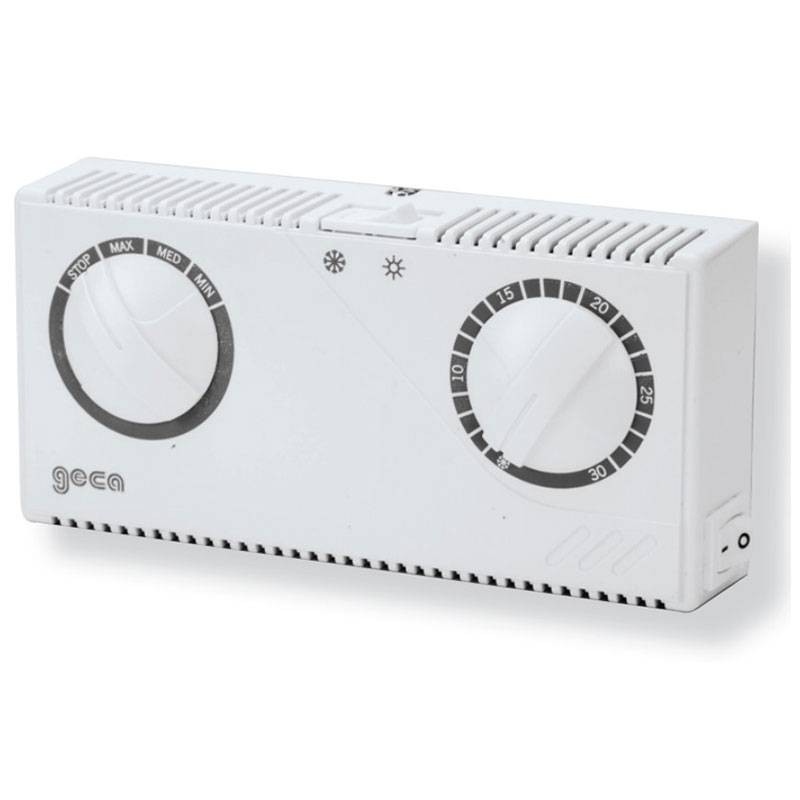 Termostato ambiente para Fan Coil Geca modelo Termo Fan 16, para la regulación de calefacción y aire acondicionado mediante control Fan Coil.