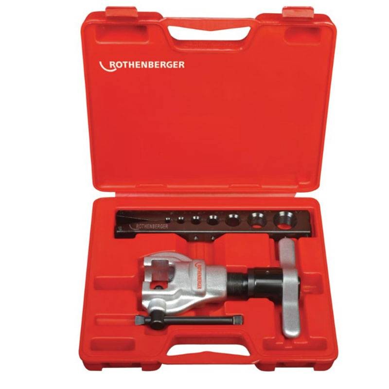 Abocinador, aparato para collarines Rothenberger para tubos de cobre 1/8-3/4 con matriz en pulgadas. Para apretar tubos de cobre avellanados de hasta 3/4 pulgadas.