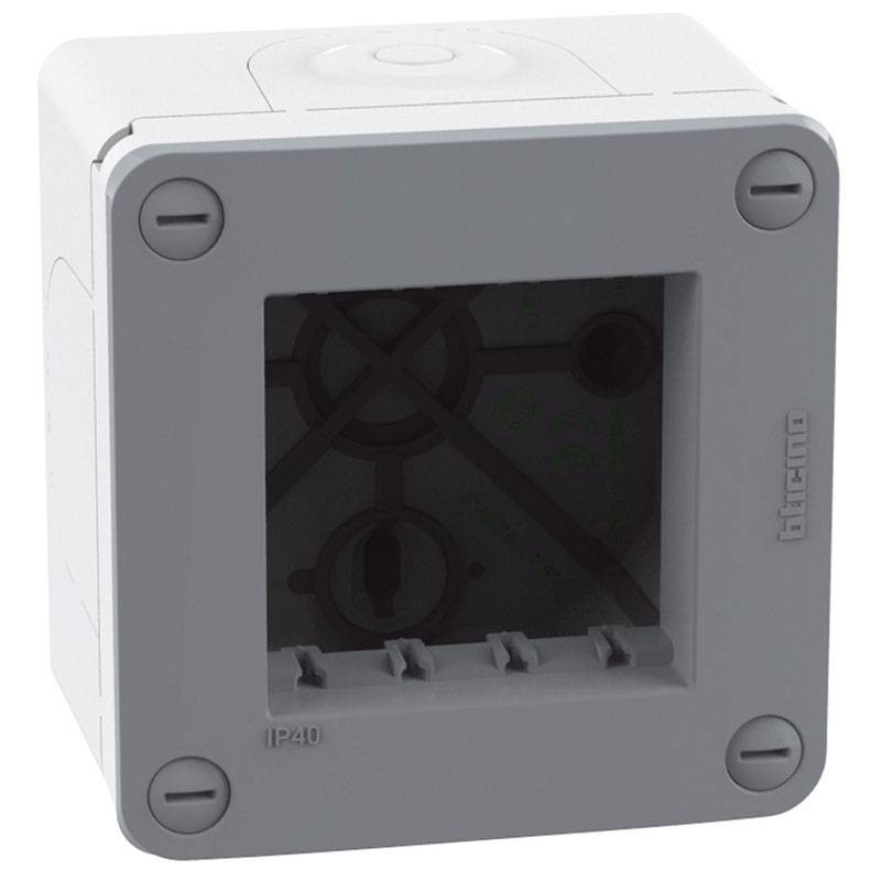 Caja hidrobox Bticino MatixGO 2 módulos, grado de protección IP40, color gris, compatible con los modulos de la serie MatixGO.