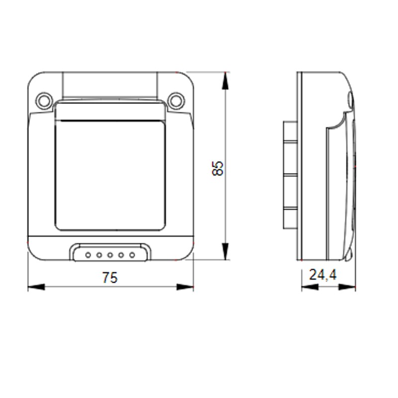 Combi en tapa estanca Gewiss System, 2 plazas, color gris. Se puede instalar dentro de todos los productos de la serie Gewiss System.