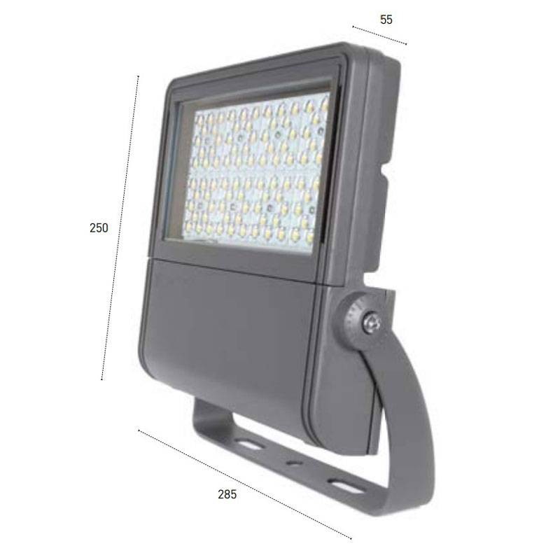 Proyector de exterior de alta eficiencia con sistema óptico multichip para mejorar la distribución de la luz y garantizar una alta fiabilidad, cuerpo con resistencia aerodinámica mejorada, pasivado y pintado con pintura epoxi de alta resistencia, herrajes de acero inoxidable y sistema goniométrico para un ajuste preciso del haz de luz. Conforme con las levas de alumbrado público.