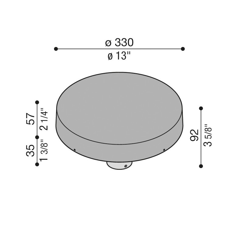 - Dimensiones: Diámetro 330 mm - Altura 92 mm - Espesor 57 mm
