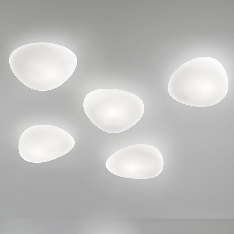 Luz de techo de Apliques de Visconti NEOCHIC Grande, blanco, iluminación 2x77W Max (bombillas no incluidas), socket E27, fuente de alimentación 230V, 50Hz, Protección IP20 para el interior, se inspira dalleffetto del agua y el viento en la piedra, el diseño de esta colección de lámparas. Las suaves curvas y la superficie lisa para cumplir con el vidrio soplado en un modelo de sencillez extrema, apto para cualquier contexto de la supervisión de algunos muebles de decoración. La sombra del vidrio: blanco satinado. Visible piezas de metal: níquel satinado.