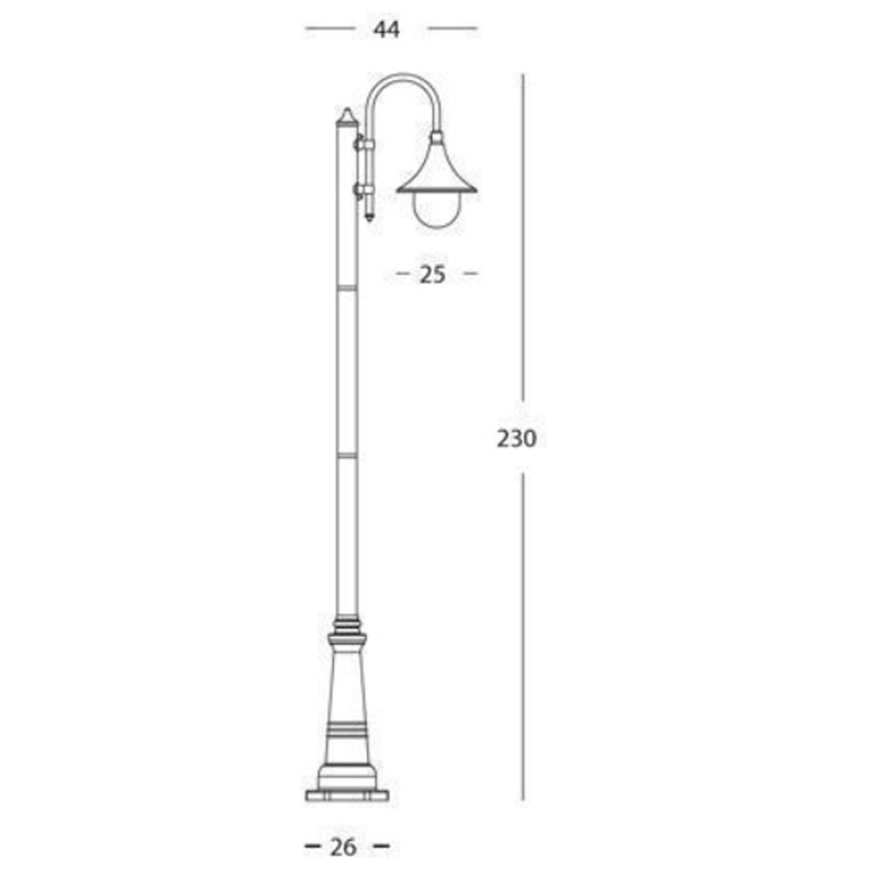 Estructura enteramente en fundición de aluminio. Tratamiento anticorrosivo con Pintura en polvo epoxi. Difusor transparente de termoplástico. La parábola de aluminio reflectante. Plantilla para la planta de fijación y tuercas de acero inoxidable y pernos. El interior del cable de la fuente de alimentación del dispositivo y el estanque de conexión. Tornillos de bronce y herramientas para apretar. Titular de la lámpara de porcelana E27 socket. apto para lámparas incandescentes y de ahorro de energía. Lámpara no incluida. Fuente de alimentación: 230V ~ 50Hz.
