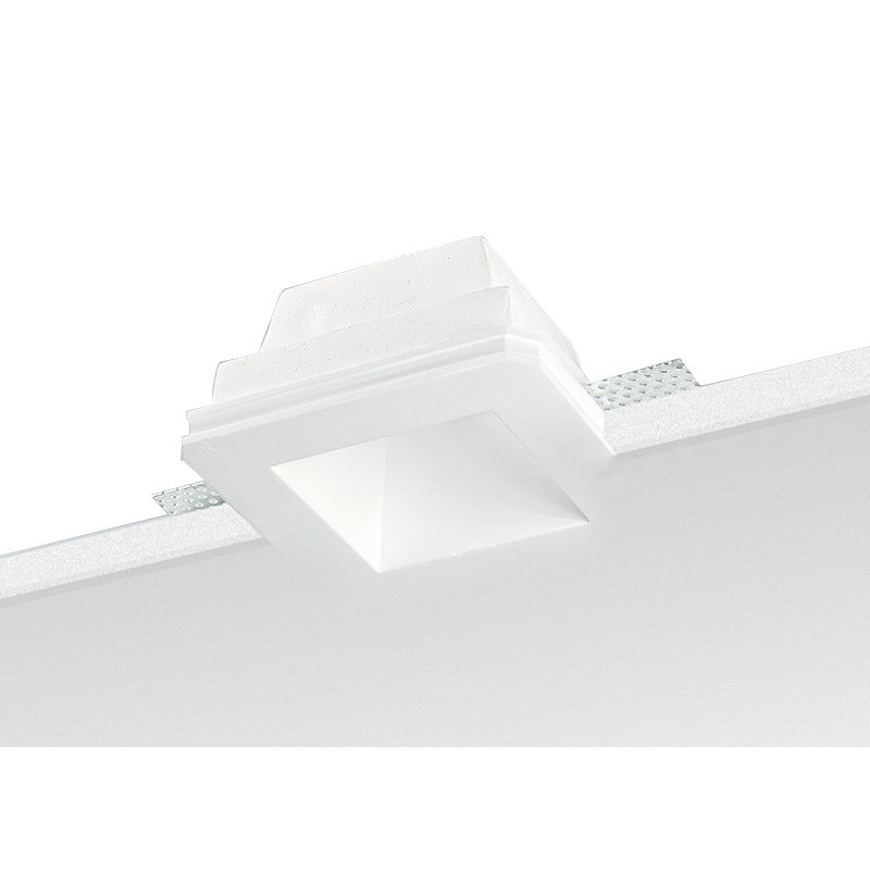 Spotlight construido en Yeso Noble Cuadrada, de color Blanco, para que coincida con el led con el ataque GU5,3/GU10, agujero 125x125mm, Lámpara incluye Lámpara no incluida, la desaparición total de la instalación en el techo de paneles de yeso. El cuerpo en tiza.