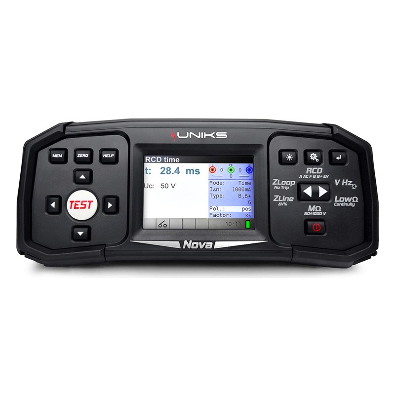 Instrumento de verificación Uniks Nova para instalaciones eléctricas y pruebas de estaciones de carga eléctrica CEI 64-8, el paquete incluye: