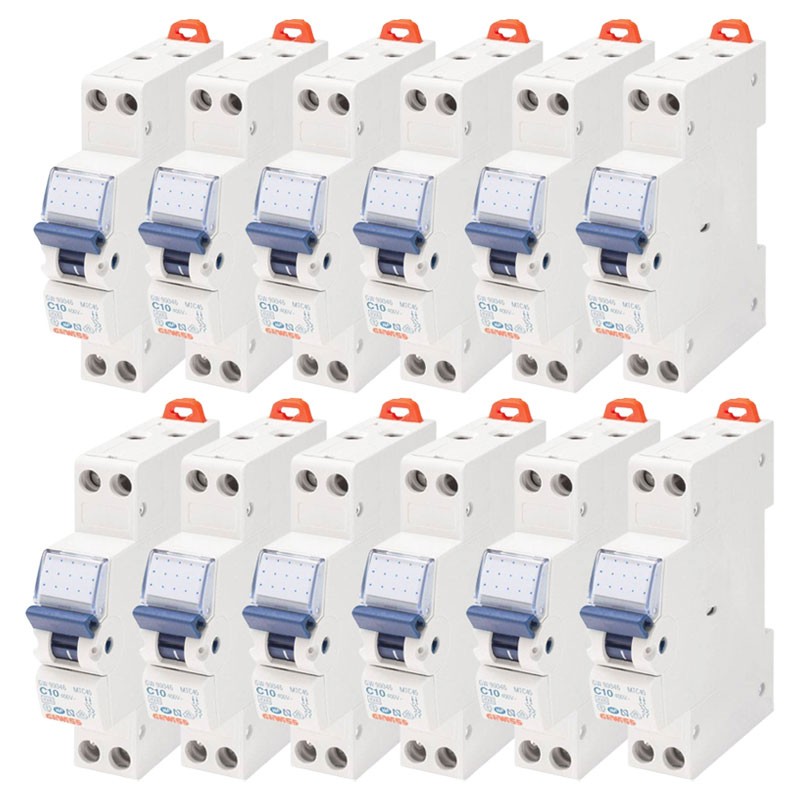 Kit 12 Interruptores Magnetotérmicos Gewiss 10A 2P 4,5KA C 1 Módulo GW90046