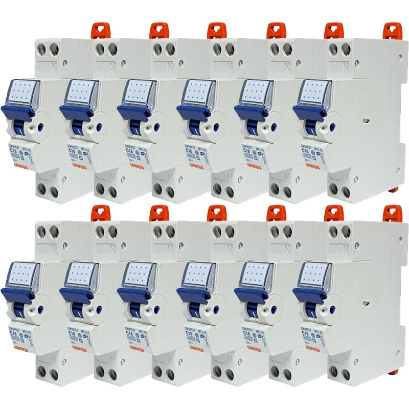 Kit 12 Interruptores Magnetotérmicos Gewiss 16A 1P+N 4,5KA C 1 Módulo GW90027