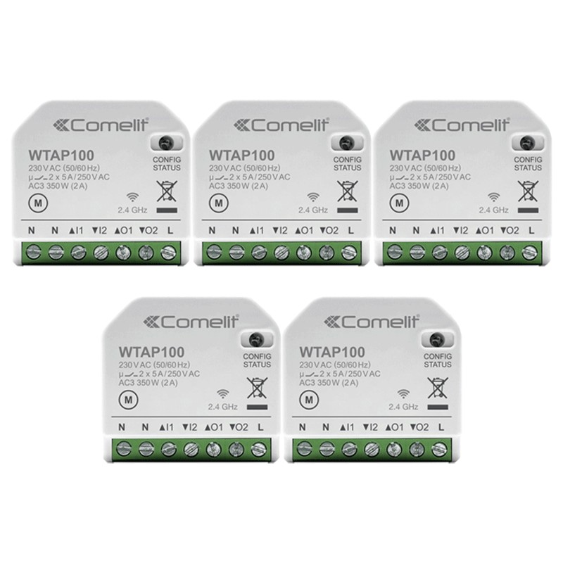 Kit de hogar inteligente Comelit Wi-Fi para gestión de persianas 2 Salidas compuesto por 5 módulos de gestión de persianas Wi-Fi artículo WTAP100.