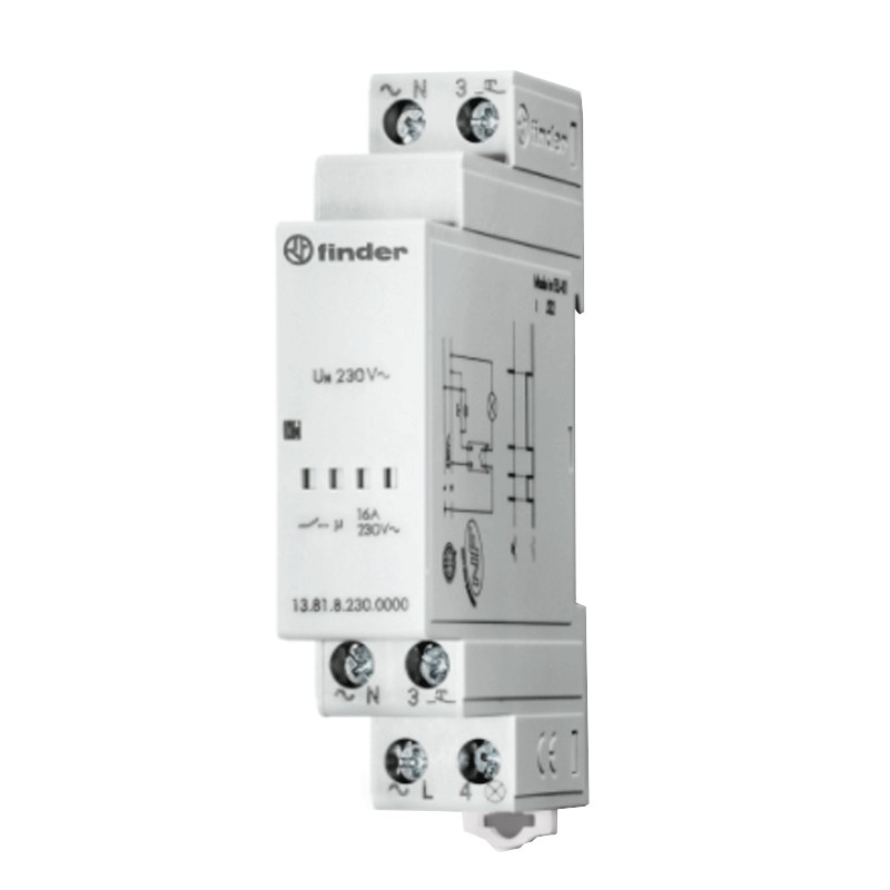 Relé de impulso electrónico/silencioso Finder TIPO 13.81, con las siguientes características: