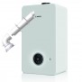 Kit concéntrico telescópico de entrada/salida horizontal con entradas de análisis de combustión. Longitud de 425 a 725 mm, con codo embridado para conectar sólo en la parte superior del aparato.