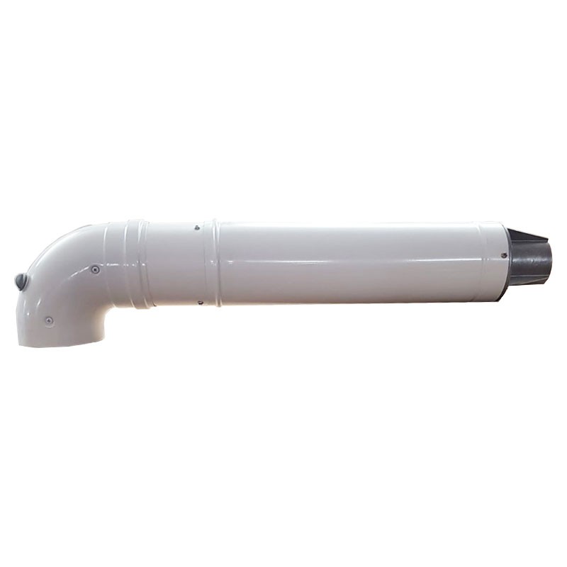 Kit con punto de partida 87° curva con brida y entradas de análisis de combustión, terminal telescópico horizontal L. 425-725 mm con rejilla filtrante anti viento, rosetas (3 uds.).