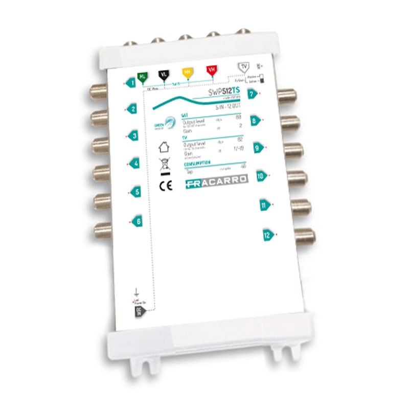 Fracarro SWP512TS multiswitch compacto con 4 entradas SAT y 1 Tve 12 tomas.