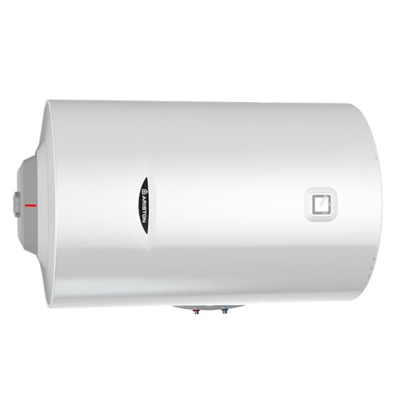 Calentador eléctrico de almacenamiento horizontal Ariston PRO1 R 80 H/3 EU, de 80 litros de capacidad, montado en la pared.