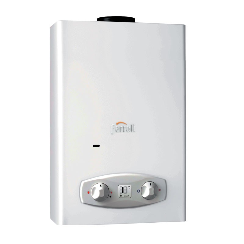 Calentador de agua mural Ferroli ZEFIRO ECO 11 de gas natural de cámara abierta y tiro natural, potencia calorífica modulante con emisión de humos tipo LOW NOx - Clase 6.