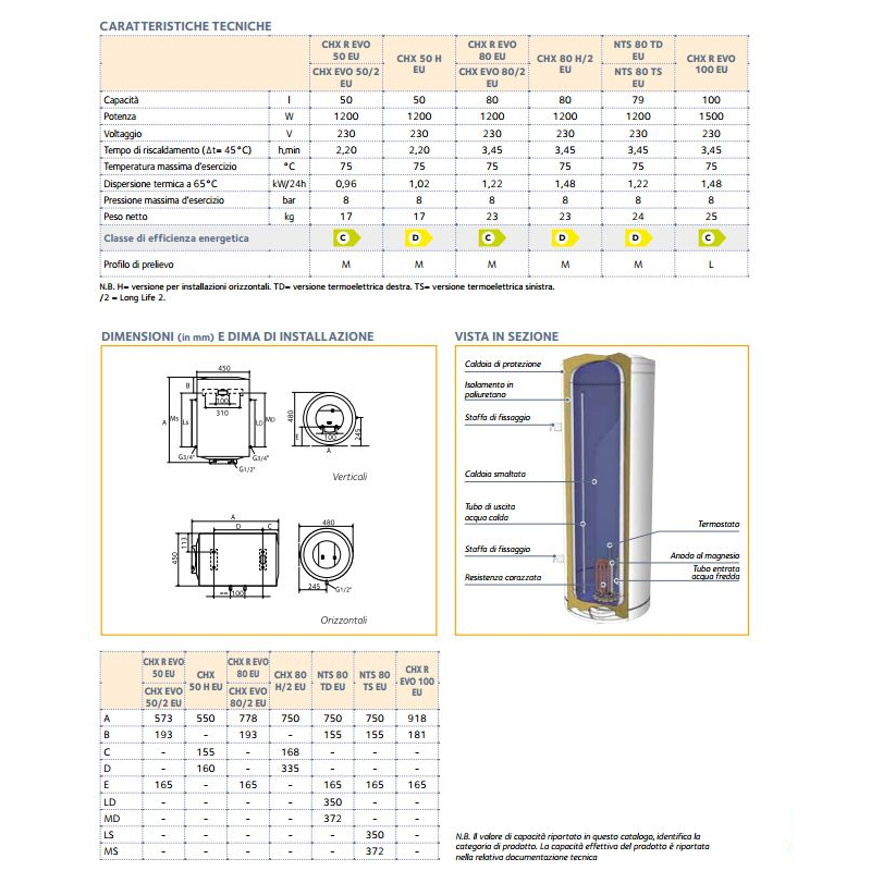 Chaffoteaux CHX EU2 Calentador de agua eléctrico horizontal de 80 litros 3201236