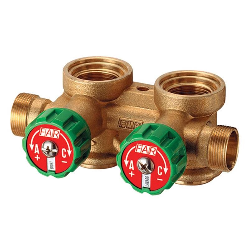 Colector coplanar Far 3752 izquierdo amarillo 3/4" con válvulas 3752 34
