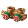 Colector coplanar Far 3752, amarillo izquierdo con válvulas de cierre tamaño 3/4" pulgadas, 2 derivaciones.