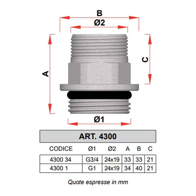 Racor para colector Far con junta o ring 3/4" M cromado 4300 34