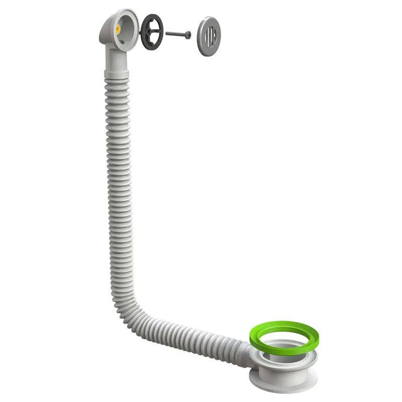 Desagüe de lavabo Bonomini con rebosadero soldado en los extremos, con rejilla redonda cromada de 38 mm de diámetro.