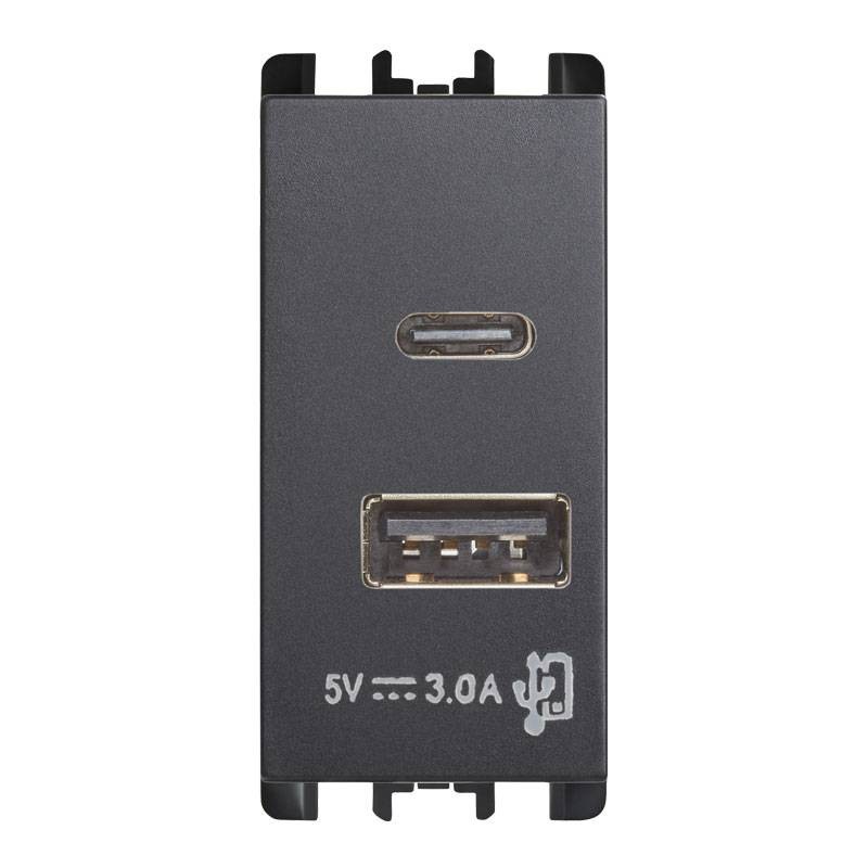 Toma USB Urmet Simon Nea con 2 tomas USB frontales 5V 3A Antracita 10331