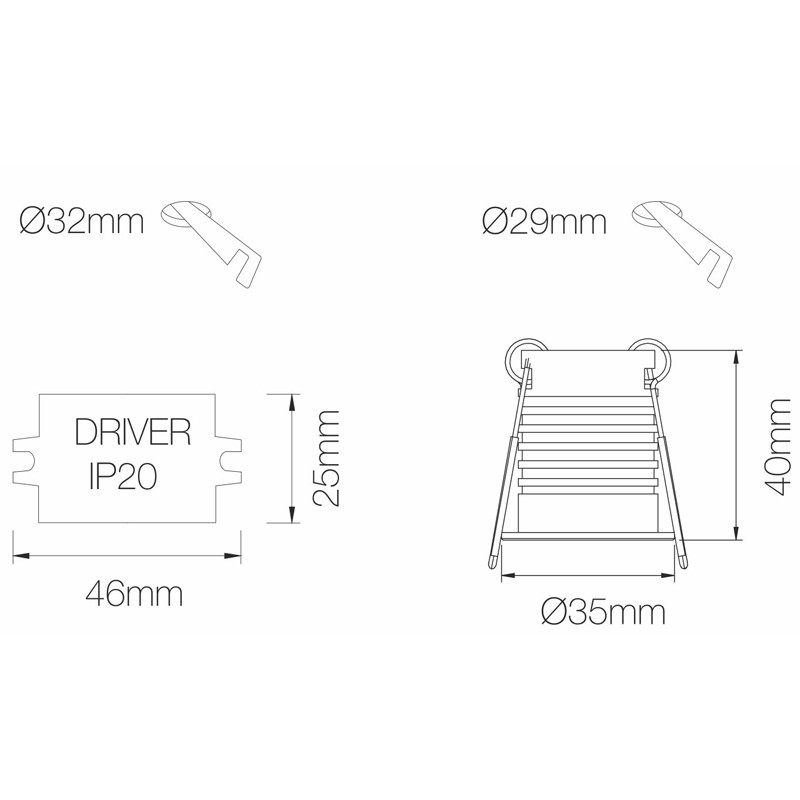 - Dimensiones diámetro del foco 35mm - altura 40mm.