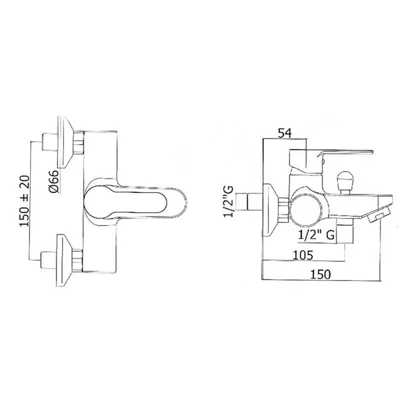 Mezcladora monocomando exterior de pared para ducha y bañera de la serie Blu, fabricado en latón fino con acabado de cromo pulido.