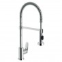 Mezclador giratorio cocina Noble Blues Cromado monomando, caño giratorio 360°, Ducha de mano, 2 chorros ajustable, Flexible, de acero inoxidable de ø 3/8, Restrictor de flujo, con el freno en un 50%