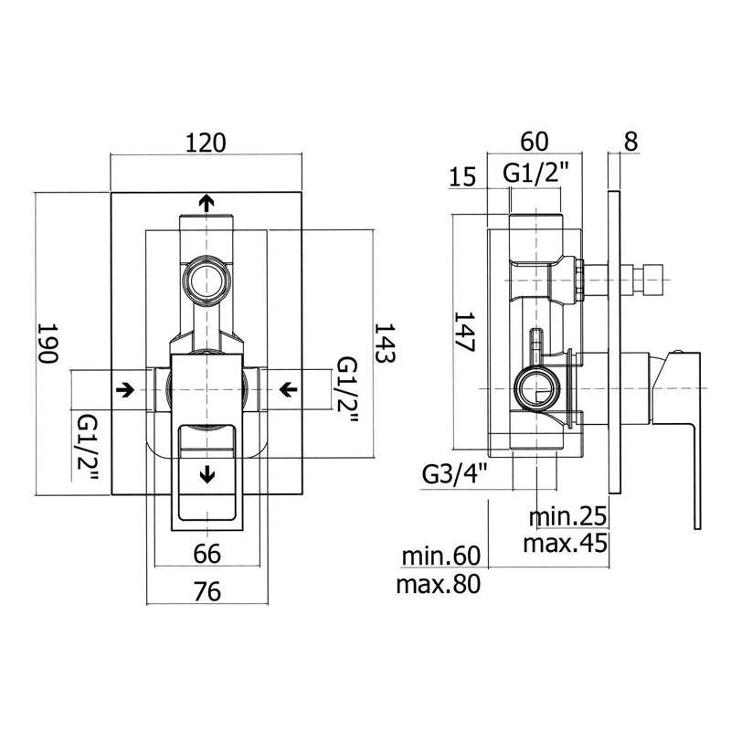 Mezcladora empotrada para ducha Paffoni Elle con desviador cromo con las siguientes características: