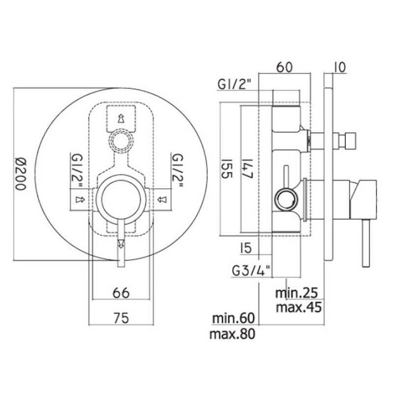 Mezcladora empotrada para ducha Paffoni Light con desviador cromo con las siguientes características: