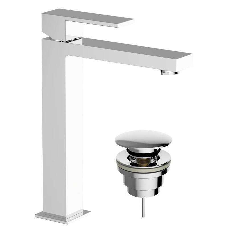 Mezcladora de lavabo alto Teorema Pillar con desagüe click clack y mangueras flexibles incluidas: